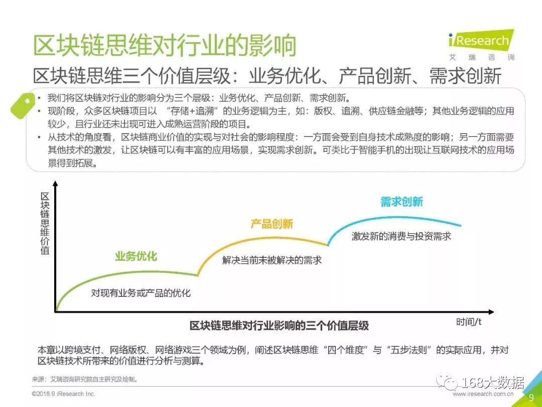 我们将区块链对行业的影响分为三个层级:业务优化、产品创新、需求创新。