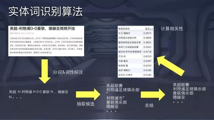 如果结果映射多个实体还要通过词向量、topic分布甚至词频本身等去歧,最后计算一个相关性模型。