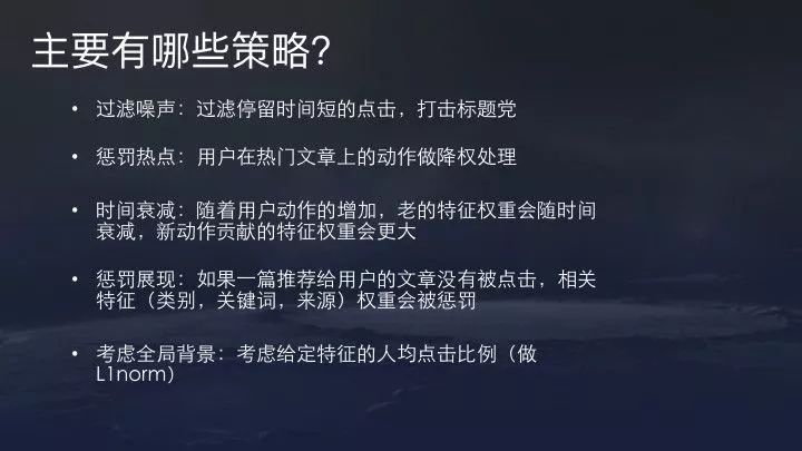 二、热点惩罚。对用户在一些热门文章(如前段时间PG One的新闻)上的动作做降权处理。理论上,传播范围较大的内容,置信度会下降。
