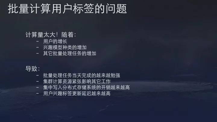 但问题在于,随着用户高速增长,兴趣模型种类和其他批量处理任务都在增加,涉及到的计算量太大。