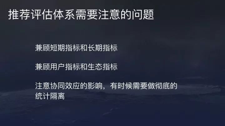 有一句我认为非常有智慧的话,“一个事情没法评估就没法优化”。对推荐系统也是一样。