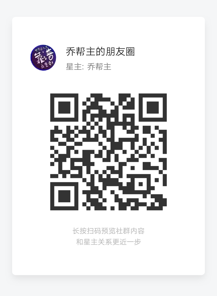新开通「乔帮主的朋友圈」知识星球,欢迎点击“阅读原文”加入。