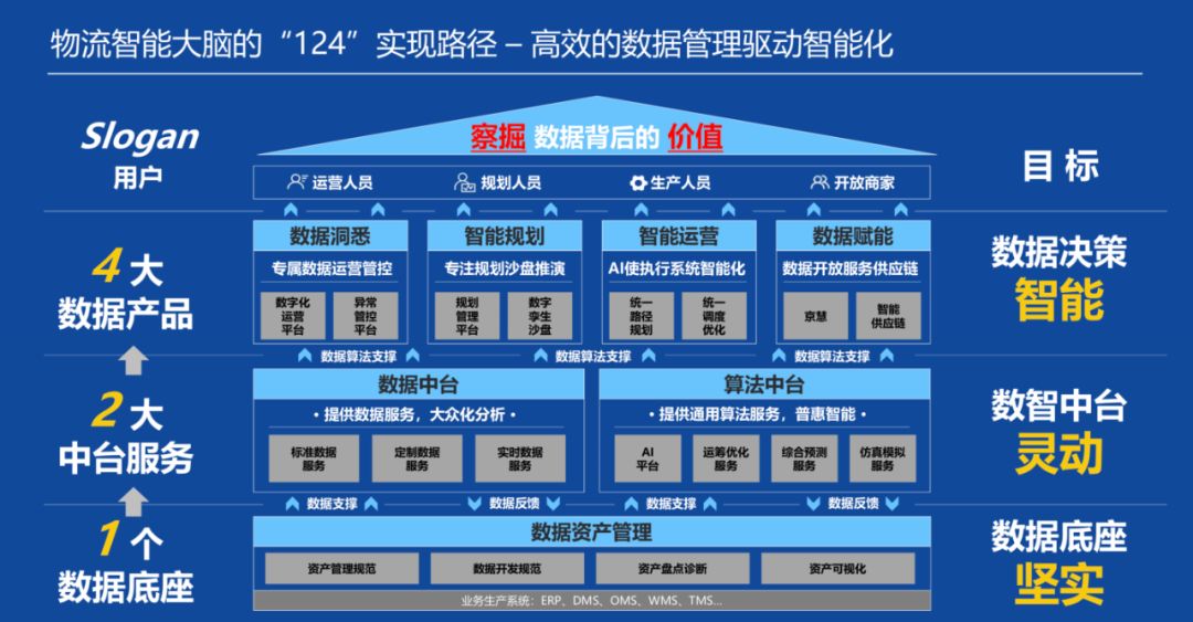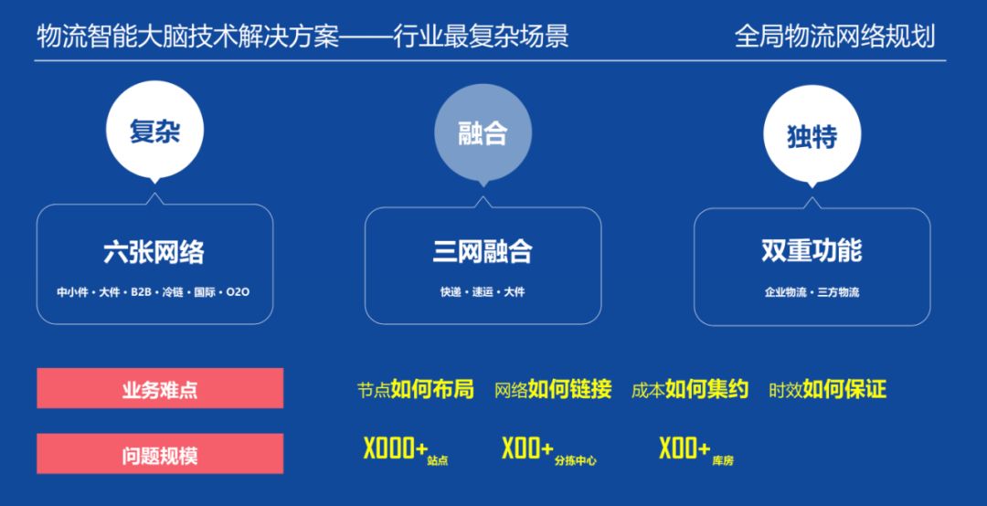京东物流对内承载着零售电商物流“211”高时效高质量的服务要求,对外既为各行业商家提供全链条的企业级供应链服务,也拥有面向个人客户的快递、仓储等业务。这样复杂多元的物流产品组合,对无论网络规划还是各环节的运营管理都提出了巨大挑战,使得数字化和智能化系统成为必选项。