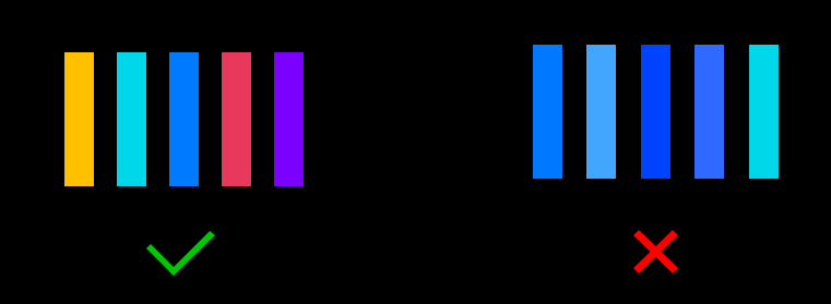 「大面积、炫酷动效、丰富色彩」,大屏易在观感上给人留下震撼印象,便于营造某些独特氛围、打造仪式感。利用其面积大、可展示信息多的特点,通过关键信息大屏共享的方式可方便团队讨论和决策,所以大屏也常用来做数据分析监测使用。了解数据可视化的相关概念后,着手设计时还有一些需要特别注意的原则。字体优先使用系统默认字体,需要嵌入字体时考虑字体的可识别性、与当前设计风格是否融合、是否可免费商用。选择字母容易辨识不会产生奇异的字体更有利于用于数据可视化设计。字体大小:字号不小于12号字,可以用于图表的标注,数据信息建议14号字以上,大屏字体可以适当的更大一些。灵活的字体:宽松的字母间距(字母之间的间距应小于字偶间距)和合适的中文字间距。中西文间隔:中西文混排时,要注意中文和西文间的间隔,一般排版的情况都是中文中混排有西文,所以需要在中西文间留有间隔,帮助用户更快速的扫视文字内容。颜色是可视化大屏中影响画面效果的重要元素。使用不当,会让读者分心。背景色的选择与可视化展示的设备相关,分为深色、浅色、彩色。小屏幕背景色选择范围就比较广,浅色、彩色、深色均可以做出很好的设计。相比之下,浅色背景更适合展示大量的数据信息,因为在浅色底上数据图表的识别度比较高。而深色、彩色背景更适合渲染简单的数据,用于烘托气氛。在大屏设备中普遍用深色作为背景色,以减少屏幕拖尾,观众在视觉上也不会觉得刺眼。所有图表的配色需要以深色背景为基础。保证可视化图的清晰辨识度,色调与明度变化需要有跨度。深色暗色背景可减少拼缝带来的不适感。由于背景面积大,使用暗色背景还能够减少屏幕色差对整体表现的影响;同时暗色背景更能聚焦视觉,也方便突出内容,做出一些流光、粒子等酷炫的效果。色彩明度与饱和度差异显著、对比鲜明, 尽量避免使用邻近色配色。如果颜色过于相似(例如浅灰与更浅的灰),人们难以发现两者间的区别。相反,也要避免强烈的对比色,例如红配绿或蓝配黄。使用用一种颜色去表达相同类型的数据,在图表中使用自然增量(0、5、10、15),而非不均匀的增量(0、3、5、16)排序要均匀。