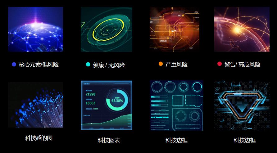 庞大的信息量充斥我们的生活,一张信息图的设计如果没有特色很快就会被淹没。因此,不论是从结构出发,还是趣味性,抑或是色彩冲击力,一定要有足够吸引人的地方,首先让用户产生兴趣。不管是展示什么样的信息内容,都要加入一些让人耳目一新的元素。亿信酷屏内置百余种炫酷组件,拖拽即可实现大屏制作。如下面这款,亿信酷屏中的魔法水晶球统计图组件,完全打破了统计图的局限,将重要数据重点展示,炫酷清晰,用在政务云、云计算、智慧城市等大屏中,效果惊艳。【参考:有了这些可视化大屏组件,酷炫大屏玩得飞起】可视化大屏的设计风格主要根据行业类型、客户喜好、具体展示指标整体搭配,但总体一般以深色为主,这主要是因为大屏如果是浅色系长时间观看会造成眼睛疲劳、刺疼,还一点就是浅色上面不是很适合体现动感光线等特效的展示。当然大屏虽酷炫,但我们也不能忘记了为了炫酷而炫酷,实际我们还是要以展示具体指标为主要目的。平时的时候可以多看一下优秀的可视化大屏案例网站,也会对设计风格有良好的帮助。数据是核心,场景是大数据呈现的承载体;场景使用具有金属质感的深青灰,符合理性的、冷静的、智能化产品的个性;数据色彩使用透明、发光、具有未来感的高亮色,和场景形成强对比,使数据更为突显、更具吸引力;为了强化客户对于风险的感知,通过颜色区分数据的风险等级,更直观的传达数据的含义。如:高风险的使用红色,红色让人联想到危险、警报。