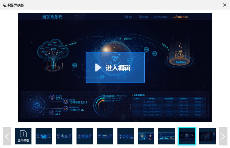 同时,亿信酷屏在进行大屏设计时,提供了十余套大屏模板以供选择,满足不同客户不同场景不同风格需求。