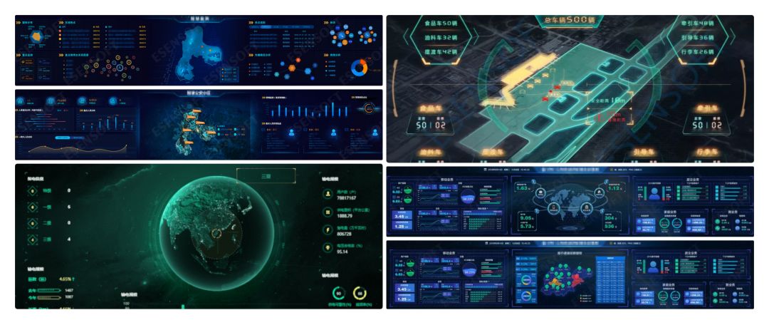 了解大屏设计的相关内容后,我们来看一下利用亿信酷屏实现的一百多张各行业大屏,开拓大屏设计新思路。