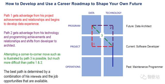 不同专业维度的发展,可能取决于IT行业技术进步,如:OA,ERP,数据仓库,大数据,这是典型的随着技术进步和企业信息化建设历程的深入而不断受到重视的专业演进路线。有些个人或公司,会随着热点切换自己的专业选择,享受新技术、新知识带来的愉悦和技术进步创造的价值;而有些则会留在某个领域精耕细作,以不变应万变、享受精进之美及专业深耕之后的从容,也许会有质的突破。