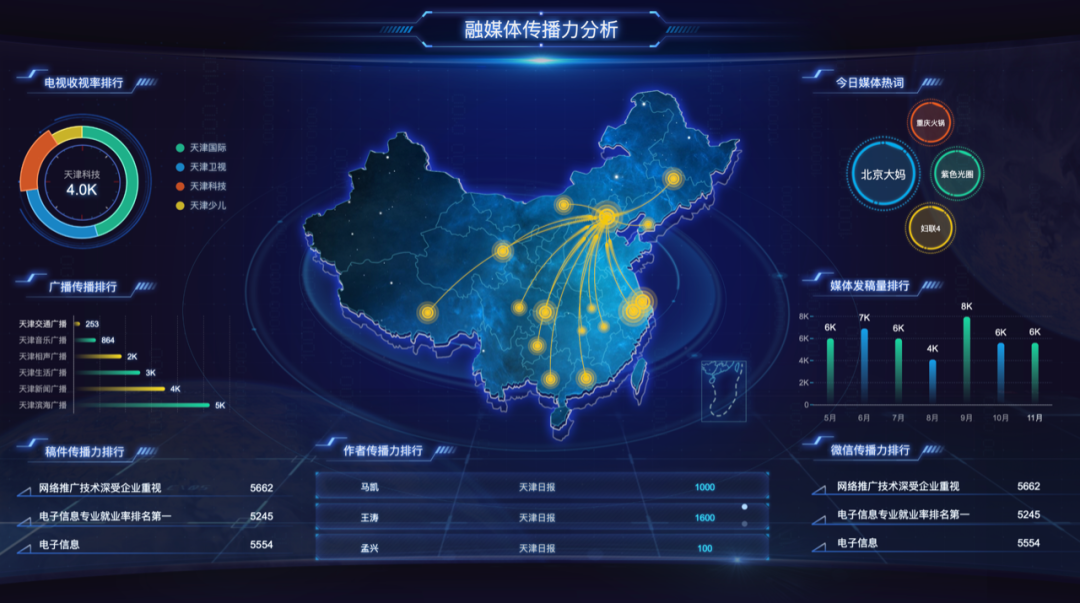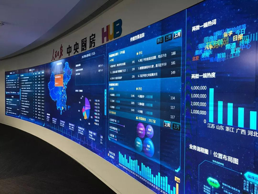 DataHunter为人民日报做的“中央厨房”可视化大屏