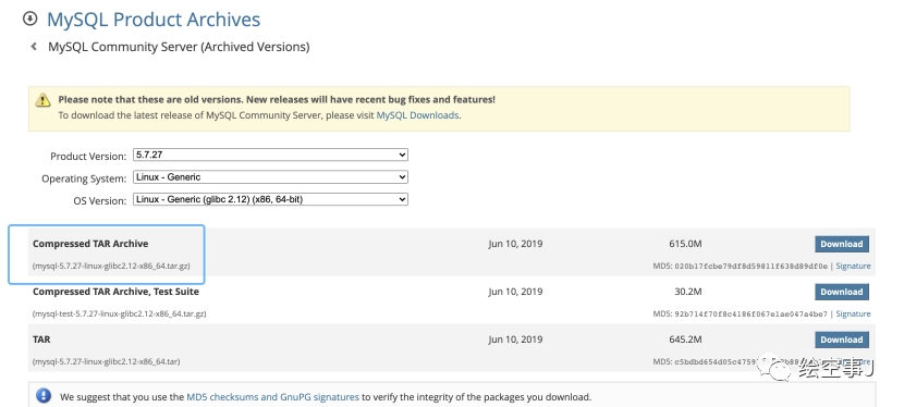 tar -xvf mysql-5.7.26-linux-glibc2.12-x86_64.tar