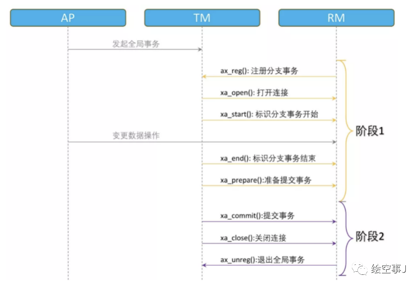 XA是数据库的分布式事务,强一致性。整个过程分两部分别是准备和提交,在整个过程中,TM会锁住数据库资源,存在长事务风险。