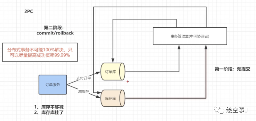 事务协调者是模型的核心,假如协调者挂了,参与者收不到提交/回滚,整个事务就锁定在中间状态,无法释放资源。