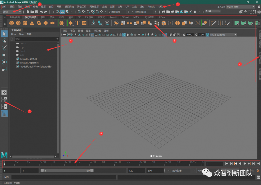 ⑥时间轴,在很多剪辑软件上都存在。MAYA作为一个动画制作软件同样具备key关键帧的能力。
