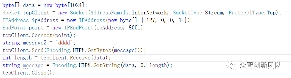 我们按步骤来先创建一个Socket指定TCP/IP通信协议,然后写入IP地址和端口号连接指定的服务器。在其中发生了三次握手,就会连接成功。这样我们就可以和服务器自由发送消息了。发送消息我们用send方法写入信息,比如上图发送的消息就是dddd。关闭连接我们用close方法。
