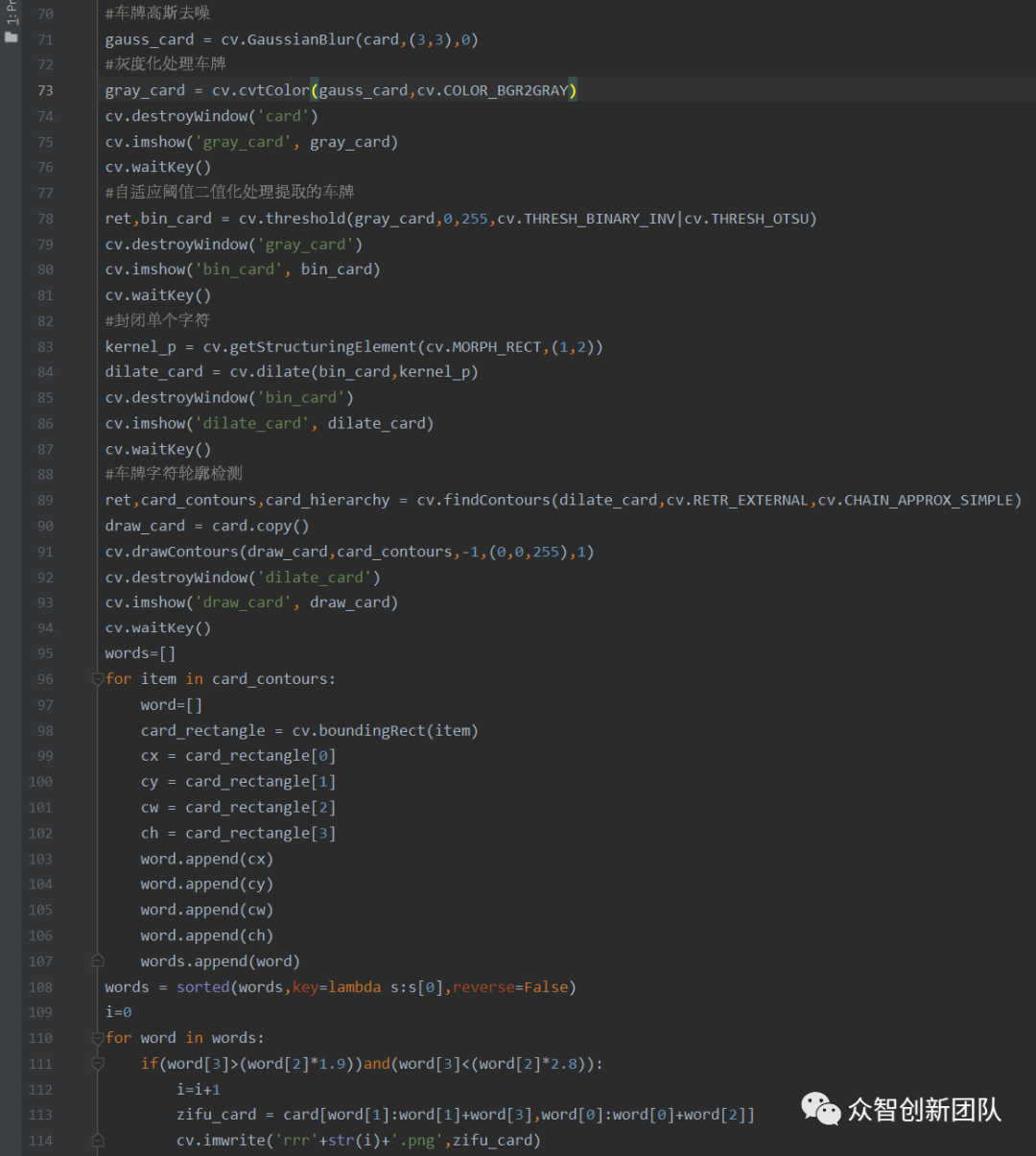 本文为大家分享了机器视觉检测与识别车牌的一种思路,首先对目标图像进行常规的预处理像高斯滤波、中值滤波去除噪声。接着利用车牌目标本身特定的长宽比锁定车牌具体位置。而获取图像轮廓边缘进而求得长宽比的方法多种多样,本次分享利用Sobel算子进行边缘检测然后通过膨胀、腐蚀等形态学操作去除多余轮廓和毛刺。最后进行轮廓检测,获取每个轮廓的坐标信息。此时,我们可以利用坐标信息转换为轮廓的长宽比信息。如此,从目标图片截取车牌图片的问题就迎刃而解了。