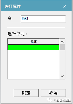 步骤二:添加属于该lnk1的元素(点击元素后再点击ABB机器人的部件将结构的同一部分添加进元素下发绿色部分),如图2所示。