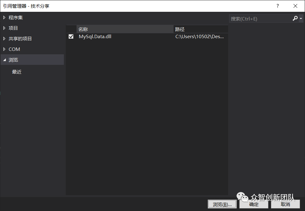1、在程序里引用MySQL这个扩展包(文末附有下载链接),如图1.1、图1.2所示。