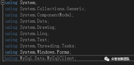 using MySql.Data.MySqlClient;,如图1.3所示。