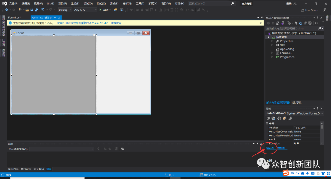 之后按照图2.2、图2.3所示进行dataGridView控件的编辑,进行表格的列的添加。