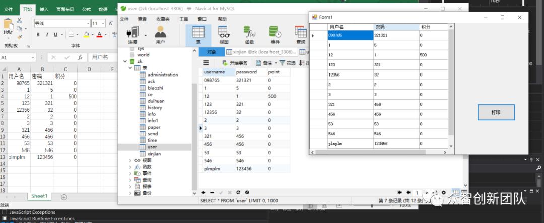 二、在软件里显示数据库表中的内容