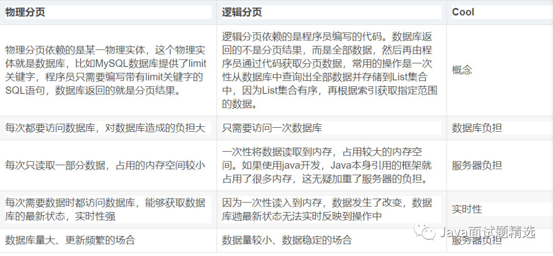 我们一般不推荐使用逻辑分页,而使用物理分页。在使用物理分页的时候,就要考虑到limit的用法。