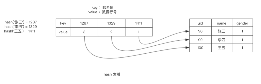 哈希索引是基于哈希表来实现的,只有精确匹配所有的所有列才能生效。