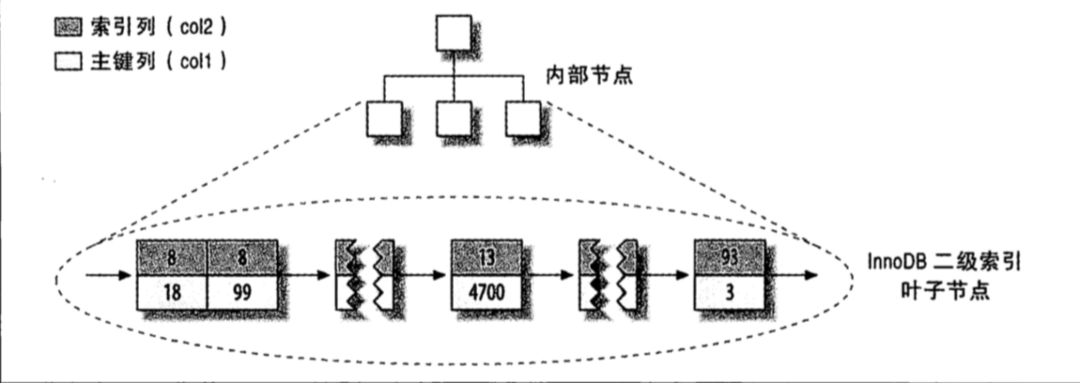 下图是聚簇索引的数据组织方式。col1为主键索引的聚簇索引树