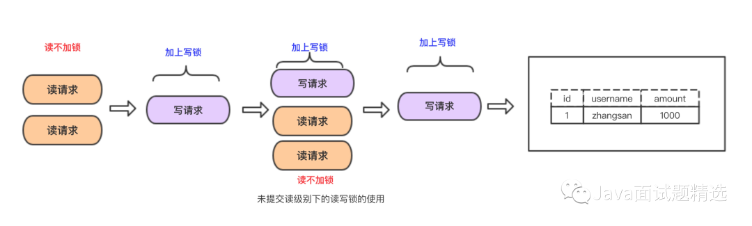 总结:通过读写锁,可以做到读读可以并行,但是不能做到写读,写写并行 事务的隔离性就是根据读写锁来实现的!!!这个后面再说。