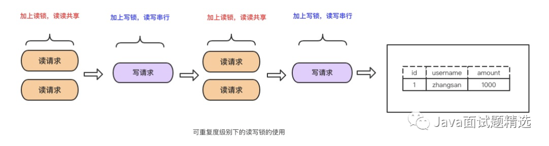 为什么能可重复读?只要没释放读锁,在次读的时候还是可以读到第一次读的数据。
