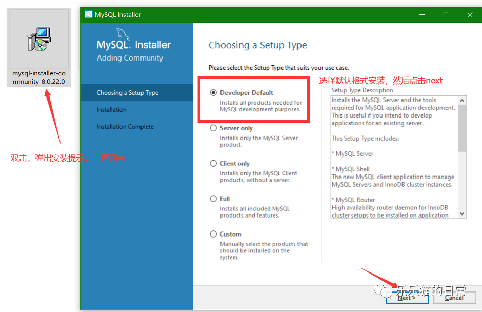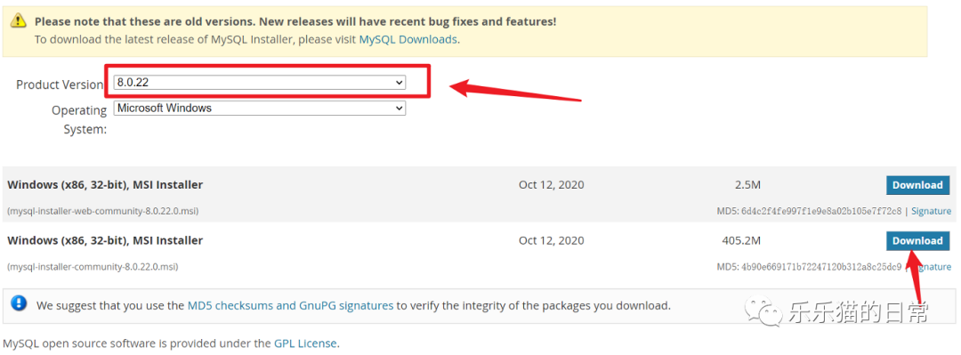 这里选择了8.0.22版本的,然后选择体量大的第二个下载