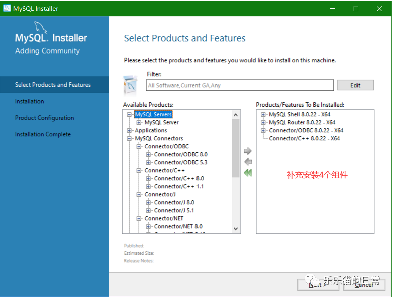 由于之前跳转不对,补充安装4个组件(已安装的是暗的,选不了),方法同前面