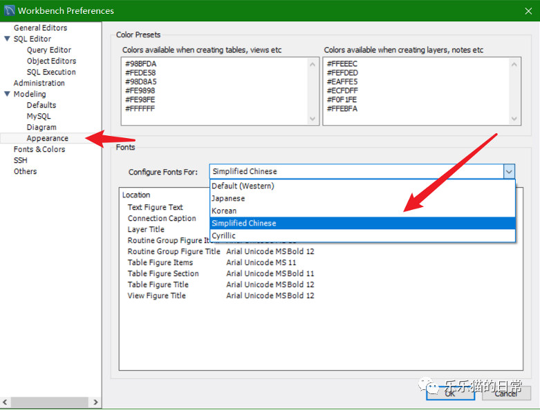 Edit→preference→appearance→fonts→simplified Chinese→重启电脑