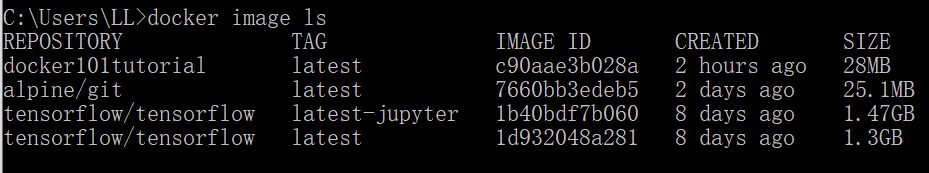 REPOSITORY表示镜像的仓库源,TAG是镜像的标签,IMAGE ID是镜像ID,然后是创建时间和镜像大小。因为我之前拉取过几个镜像,所以这里会有。
