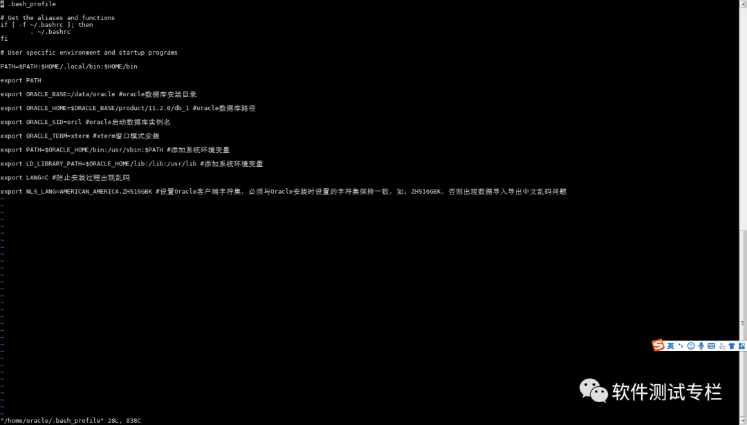 vi home/oracle/.bash_profile #在最后添加以下代码: