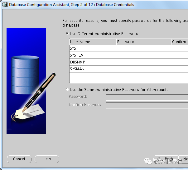 口令配置,可以为每个账户设置不同的口令,也可以为所有账户设置一个相同的口令,选择第二项:所有账户使用同一管理口令