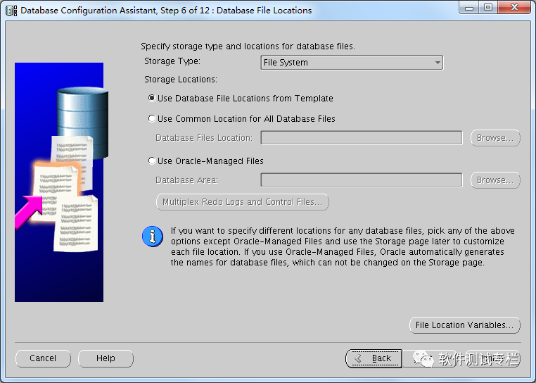 存储类型:文件系统。存储位置:使用模版中的数据库文件位置,默认选择next