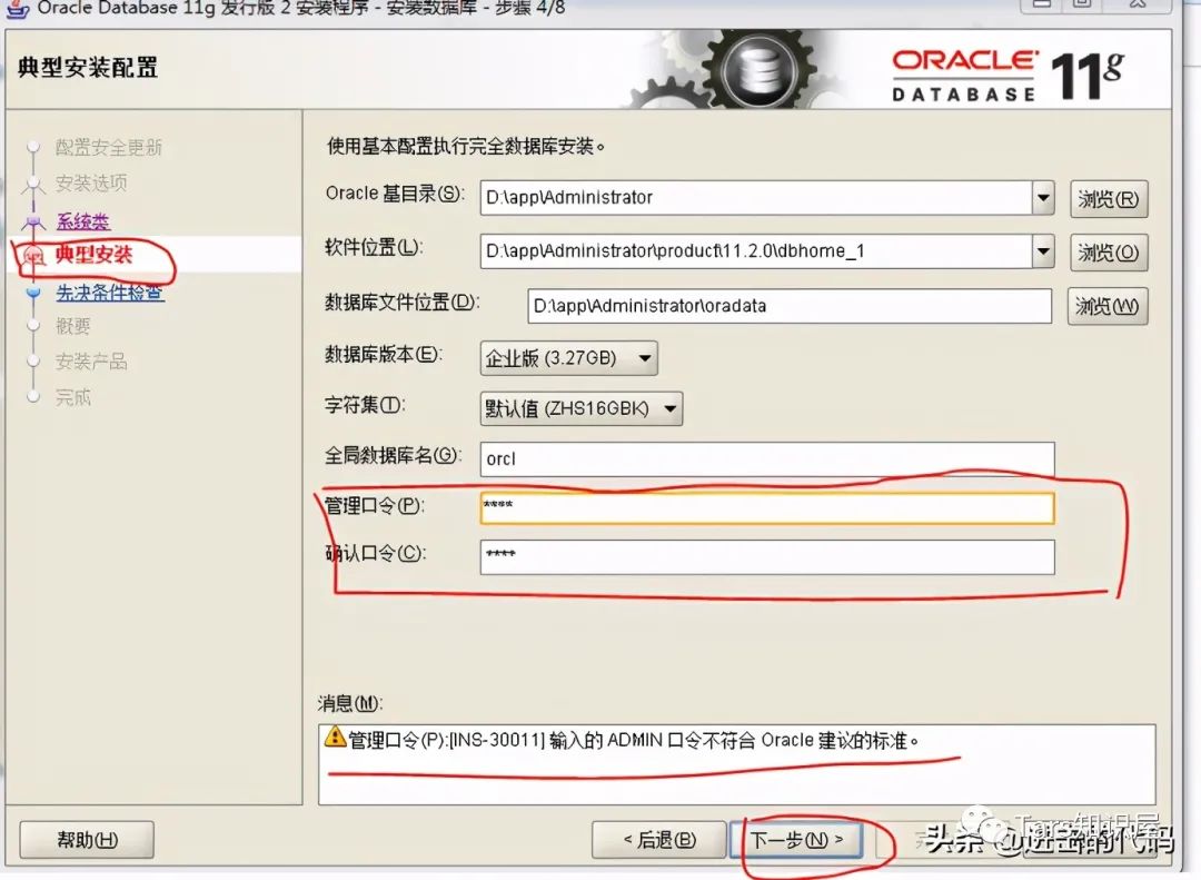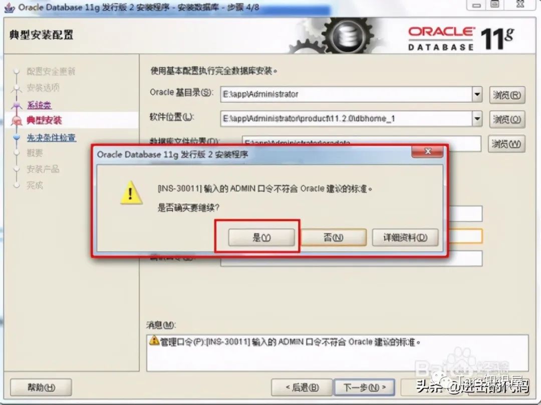 图6)输入Oracle admin用户名口令,忽略系统提示,点击下一步