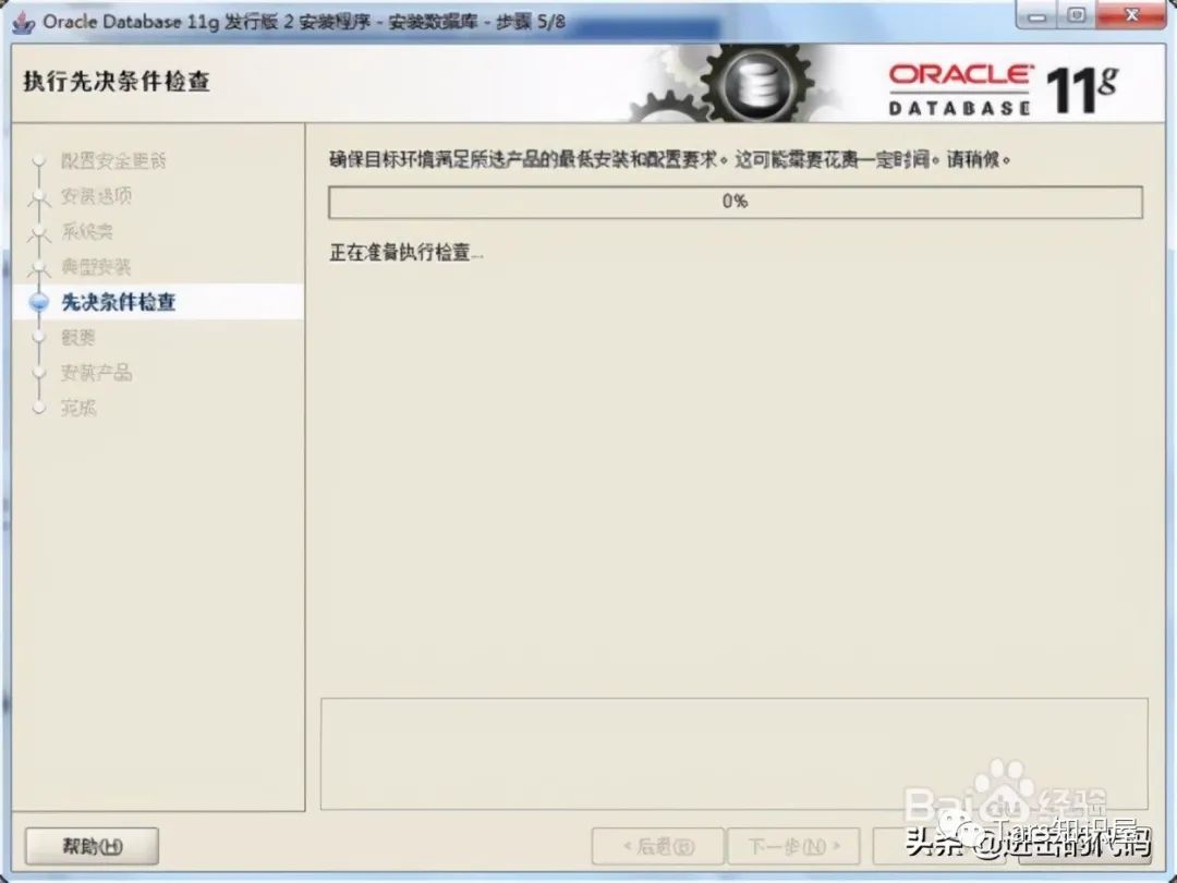 图2) 运行安装程序Setup.exe,系统将启动Oracle Universal Installer,然后进行先决条件检查;检查通过进入图3