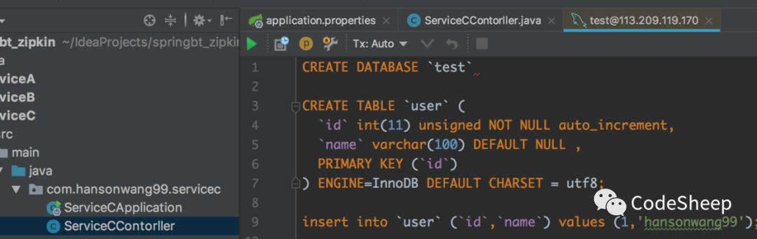 依然继承前文:《微服务调用链追踪中心搭建》,我们改造一下文中的ServiceC这个微服务,在其中添加与Mysql数据库的交互。