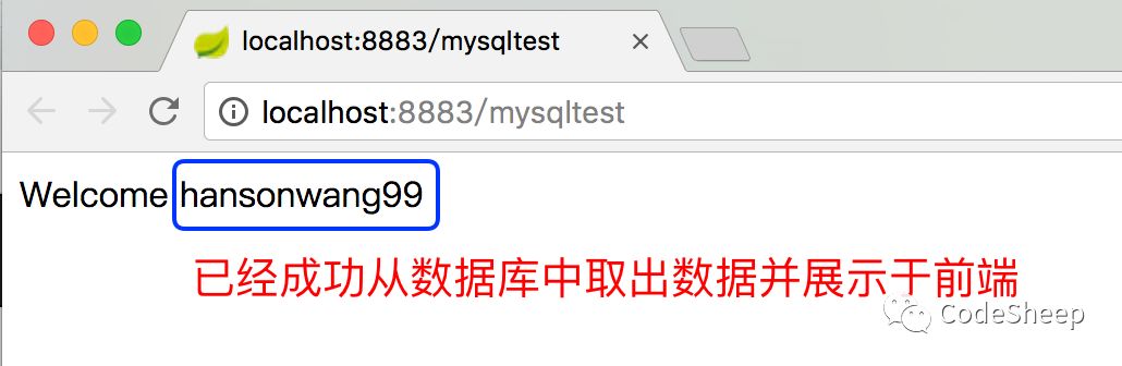 接下来浏览器中再次输入:localhost:8883/mysqltest