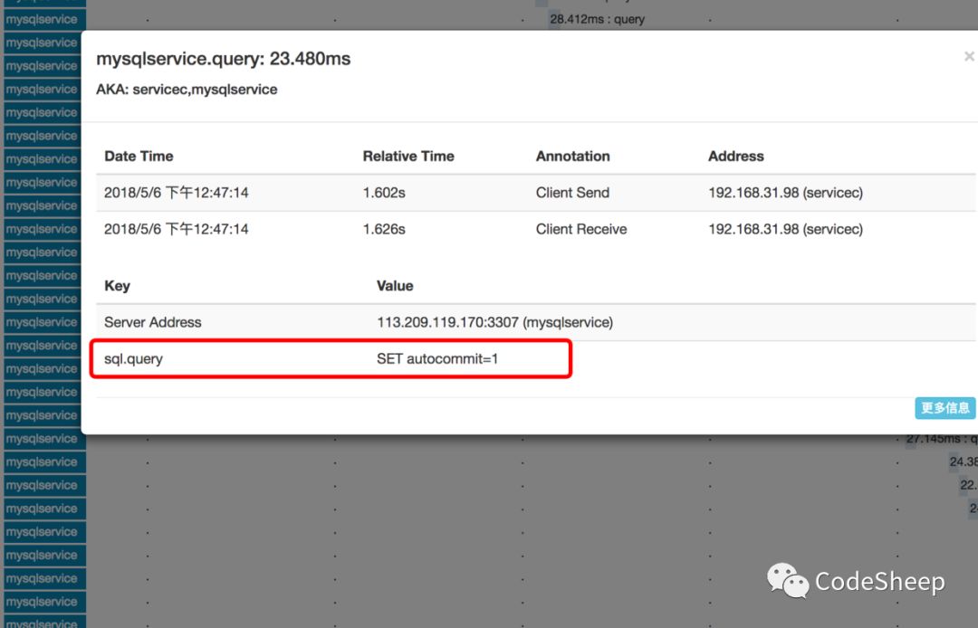 可以看到 首次查询 Mysql的调用链追踪信息,有很多