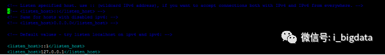 修改服务器的配置文件/etc/clickhouse-server/config.xml,找到这个代码块Listen specified host.,放开注释即可,修改之后的内容如下: