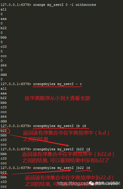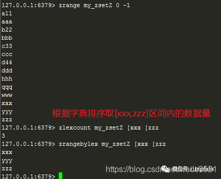 结合zrem和zrangebylex功能:将zrangebylex匹配的结果从有序集合中删除: