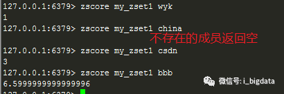 返回有序集中,成员的分数值,不存在的成员返回空: