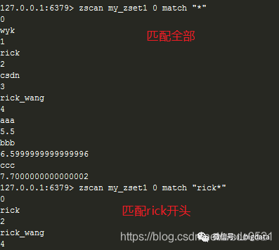 用于迭代有序集合中的元素(包括元素成员和元素分值)并将匹配到的值返回:
