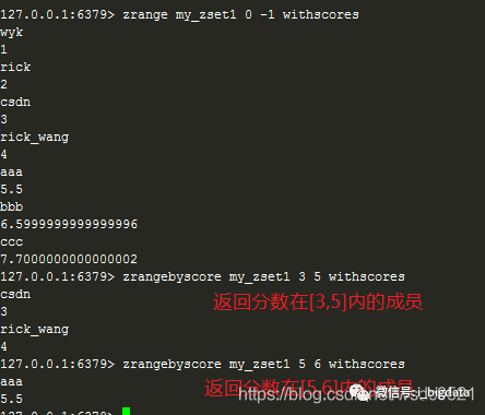根据分数查看集合内所有成员(及分数),[start,stop]: