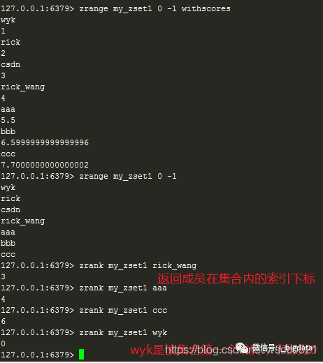 结合zrank和zrevrange功能。反序返回有序集合中指定成员的索引(下标):