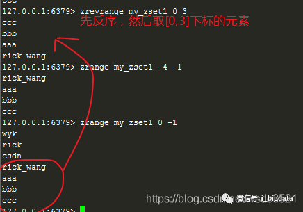 与zrange功能类似,不同的是zrevrange会将集合先反序[reverse]之后再执行zrange返回: