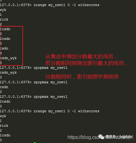 redis5版本之后的新功能。从集合中弹出分数最高的成员,返回该成员和分值,然后从集合中将其移出: