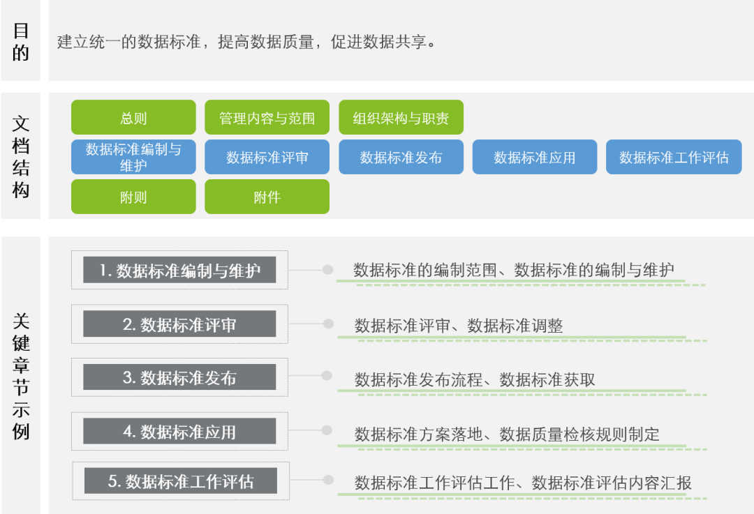 数据治理专项办法上承《数据治理章程》,下接工作细则,包含该专项工作的总则、工作内容与范围、组织架构与职责,定义了该专项工作下的主要工作任务。